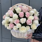 Метки: Белые розы, На свадьбу, от 5000 руб, Роза 50 см, Розовые розы, Розы в корзине, цветы в корзине