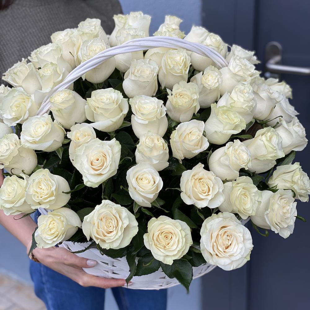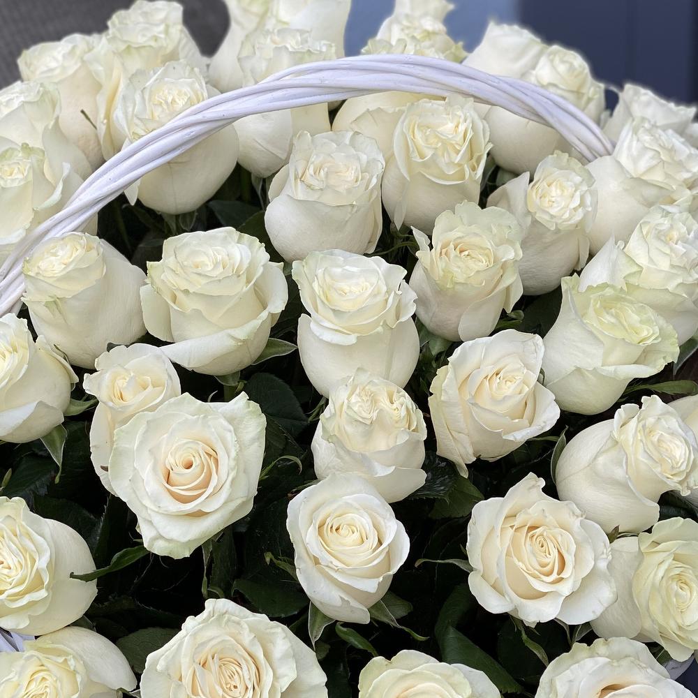 Корзина из 65 белых роз