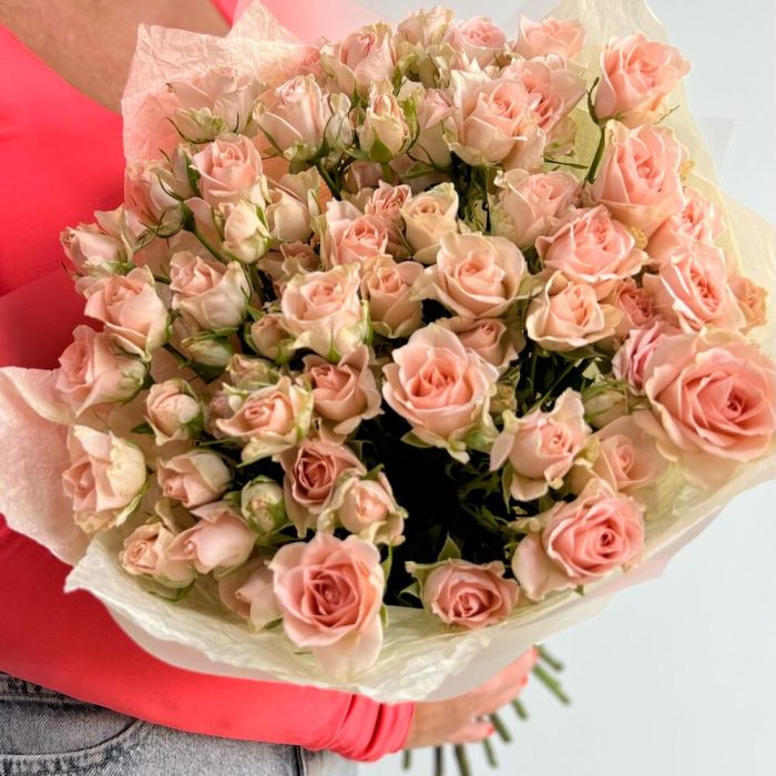 Кустовая роза – 15 шт.Тишью – 2 шт.Упаковка – 2 шт.