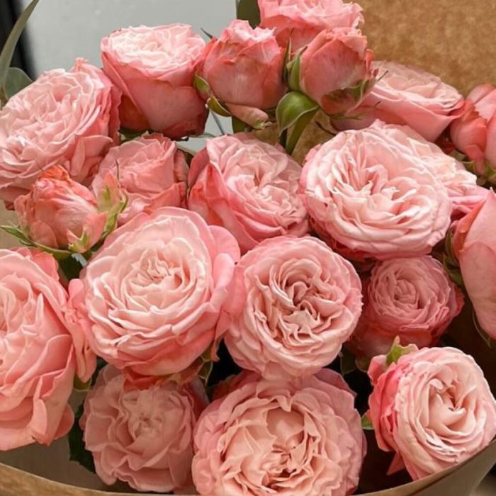 пионовидные кустовые розы – 7 шт. Упаковка дизайнерская – 1 шт. Открыточка с вашими пожеланиями – 1 шт. инструкция по уходу за цветами – 1 шт.