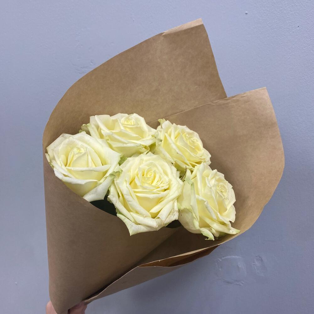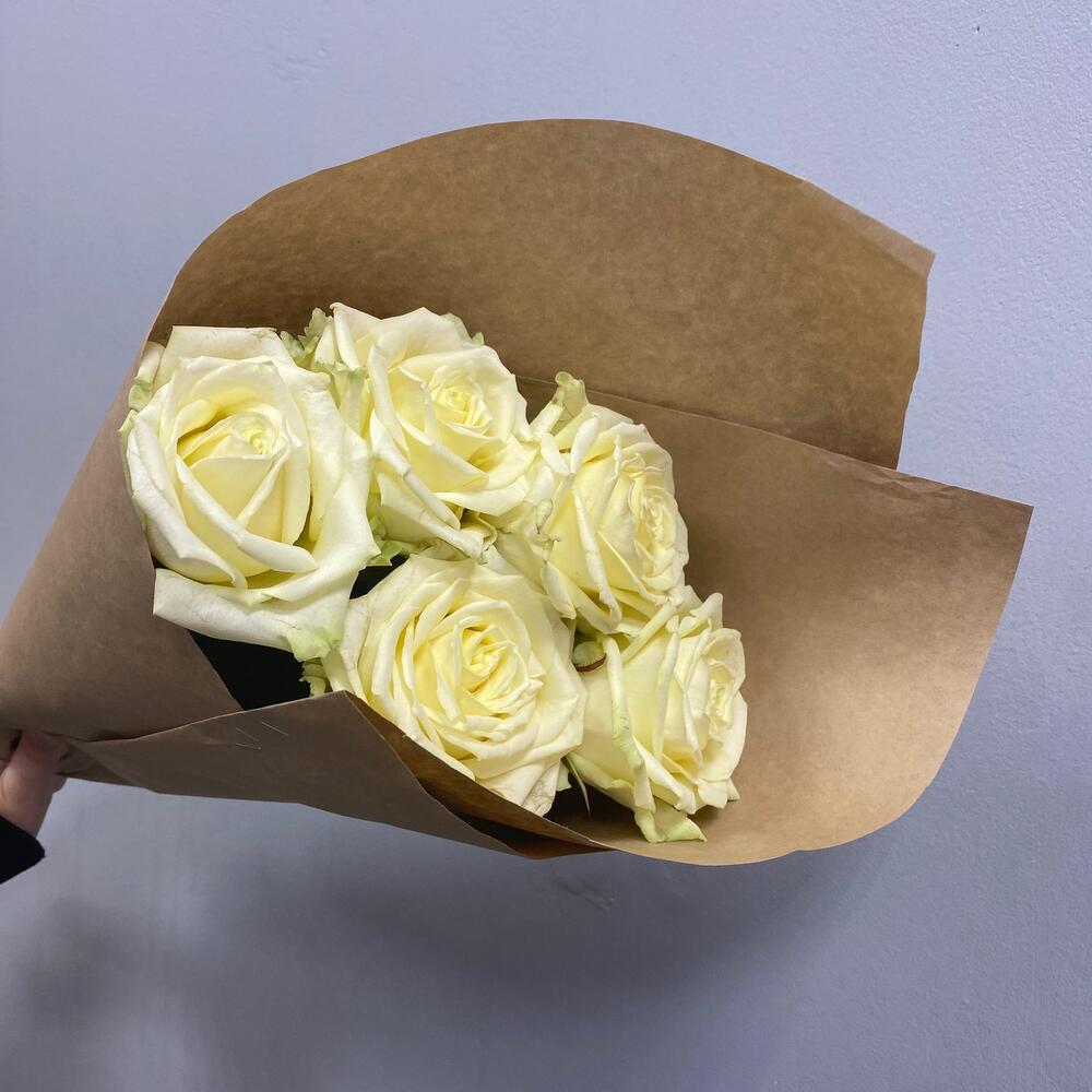 Роза – 5 шт.Крафт упаковка – 1 шт.Открыточка с вашими пожеланиями – 1 шт.