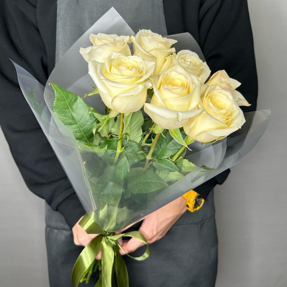 Лента атласная – 1 шт.Упаковка дизайнерская – 1 шт.Роза одноголовая эквадор – 7 шт.