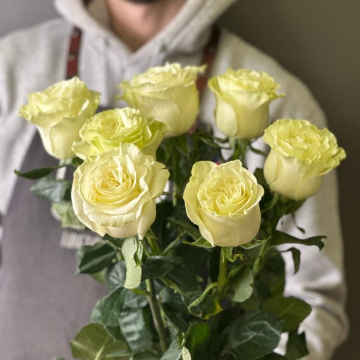роза mandial 70 см – 7 шт.Лента атласная – 1 шт.