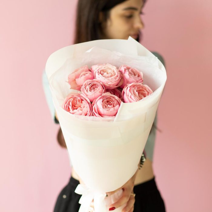 Нежный монобукет пионовидных кустовых роз Сильвия пинк в размере S