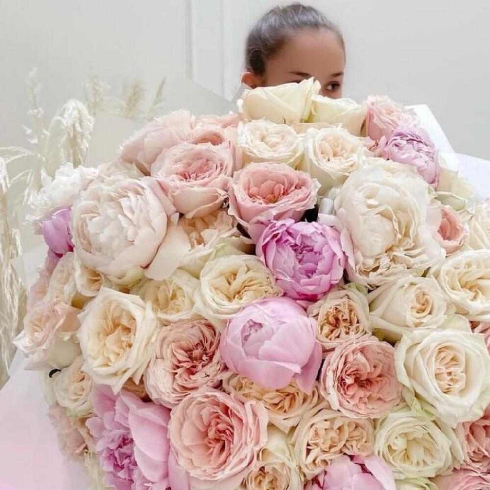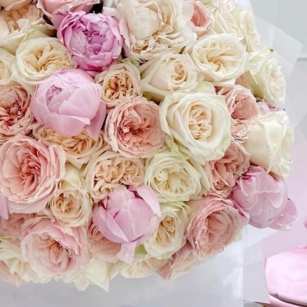 Пионовидные розы и пионы «Нежность»