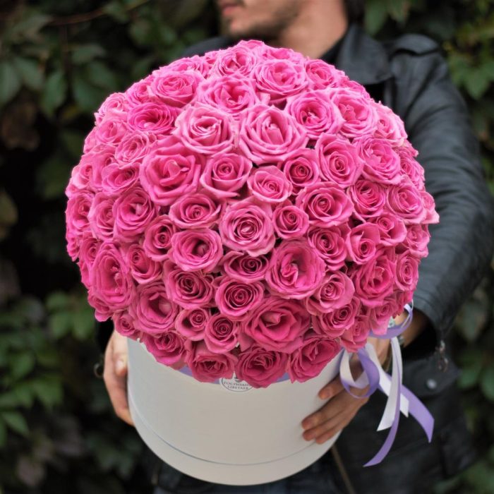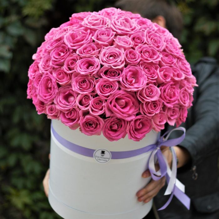 101 розовая роза в коробке с бесплатной доставкой на дом и в офис. Солидная классика для самого дорогого человека.