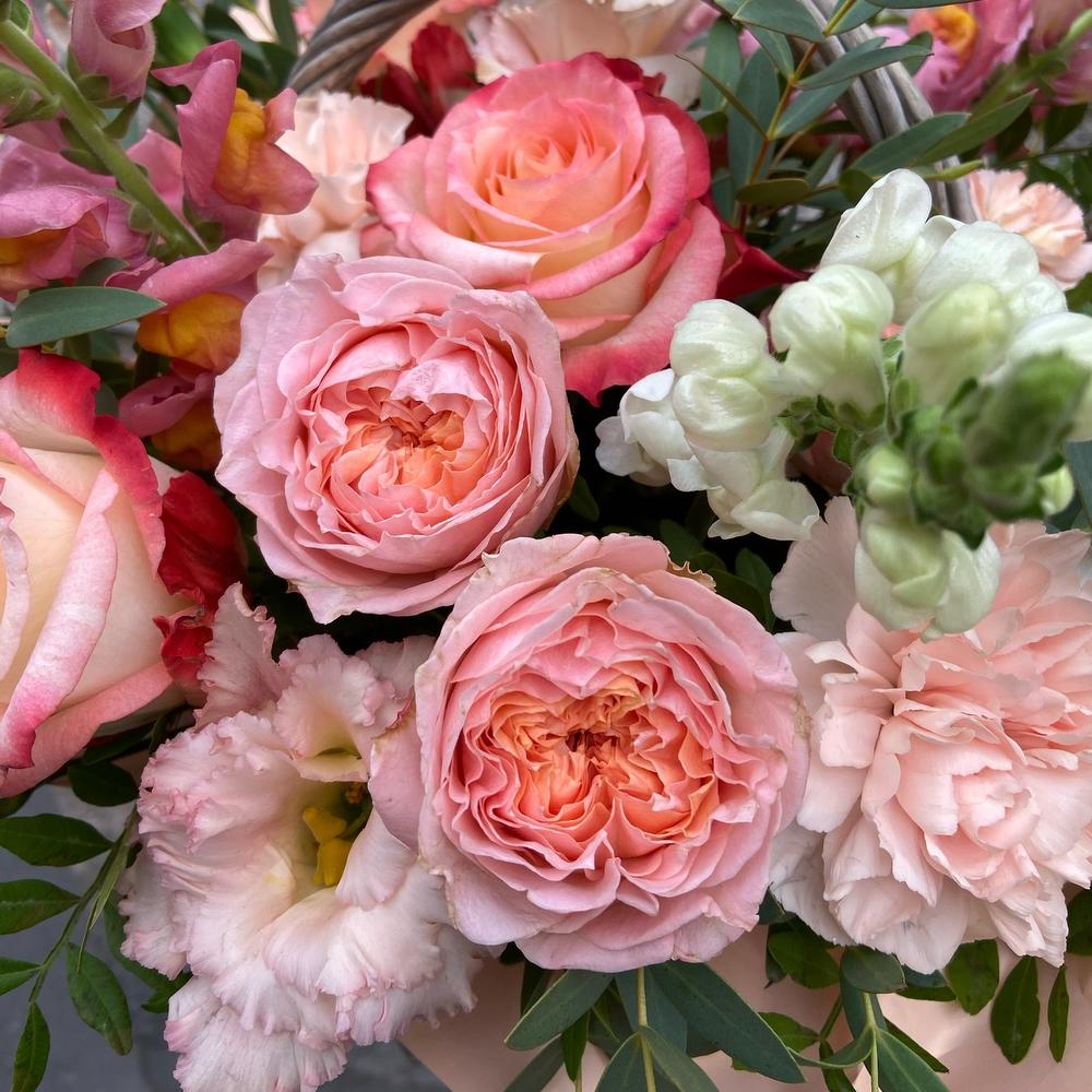 Альстромерии, Гортензии, Кустовые розы, Лизиантусы, Розы, Хризантемы