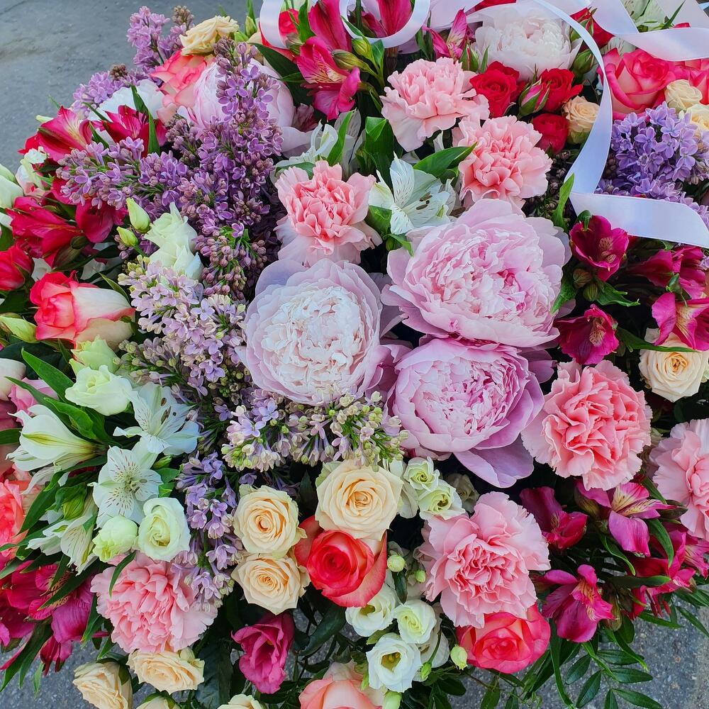 Гвоздики, Кустовые розы, Лизиантусы, Пионовидные розы, Розы