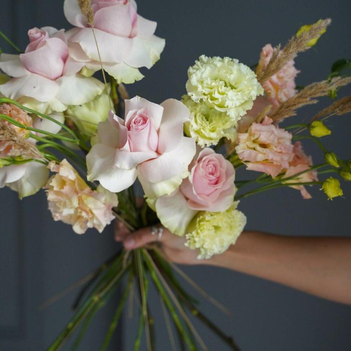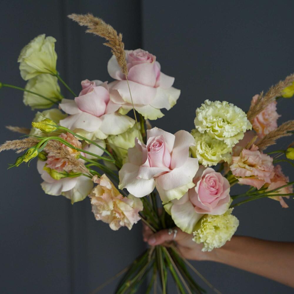Гвоздики, Кустовые розы, Лизиантусы, Пионовидные розы, Розы