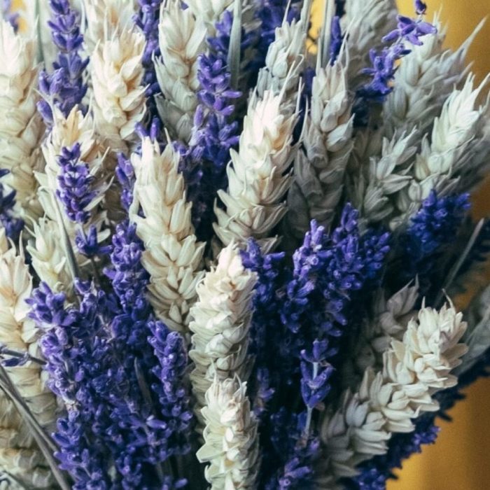 Лаванда (сухоцвет) – 85 шт.Лента – 1 шт.Пшеница (сухоцвет) – 15 шт.