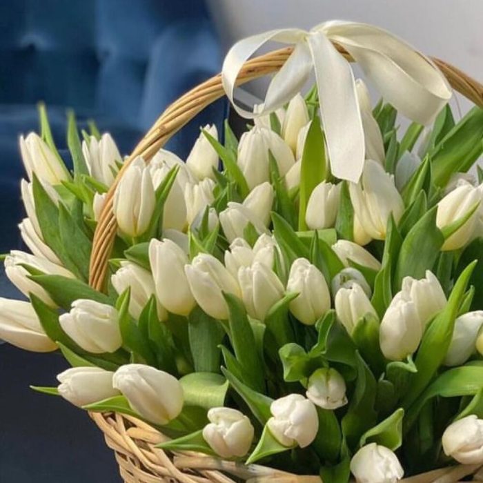 Корзина с белыми тюльпанами