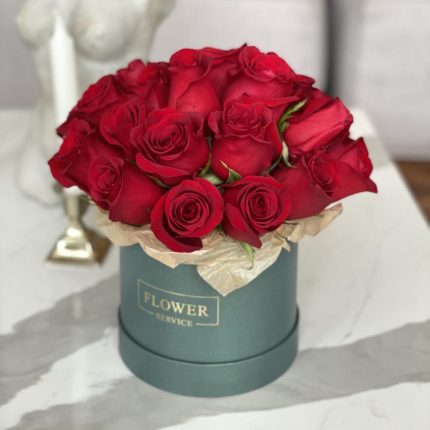Букет из розовых роз и конфет Рафаэлло в декоративной коробке-сердце “С любовью и теплом”